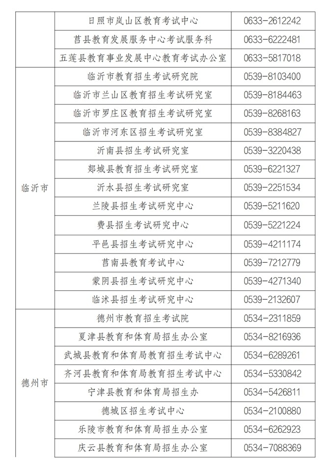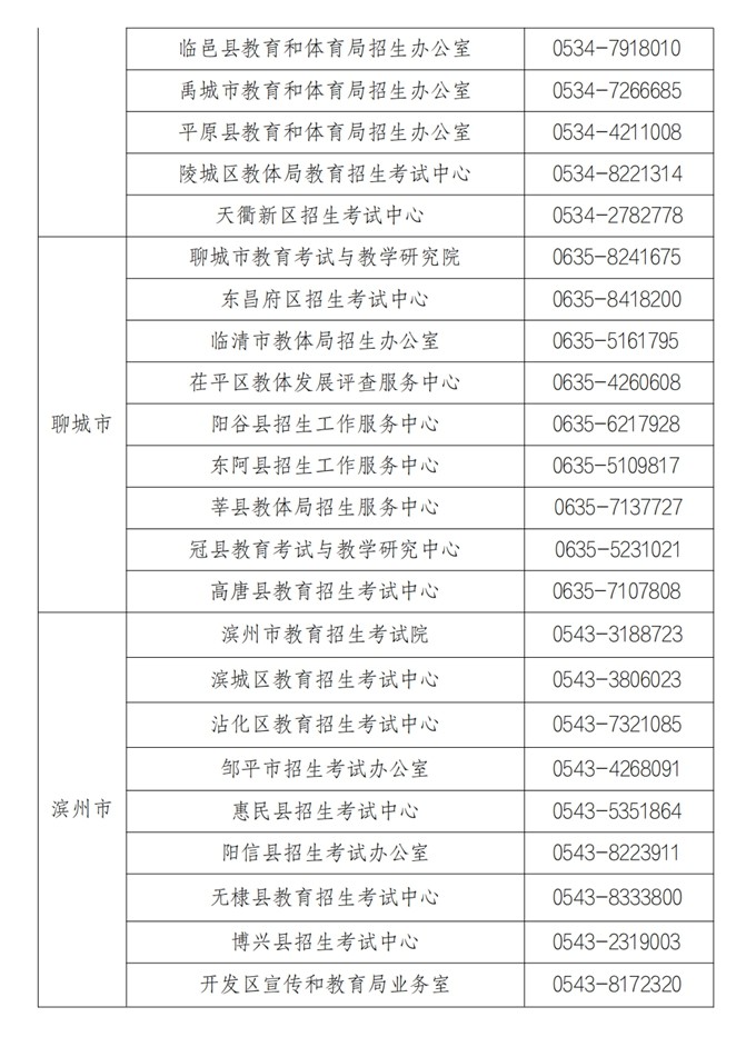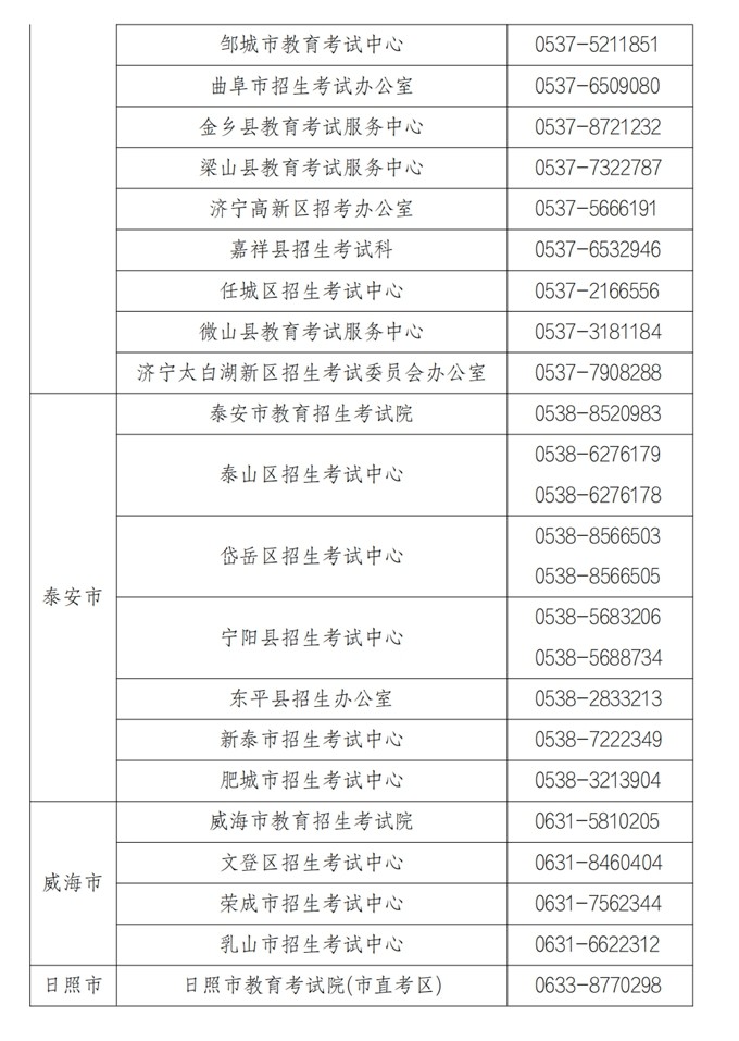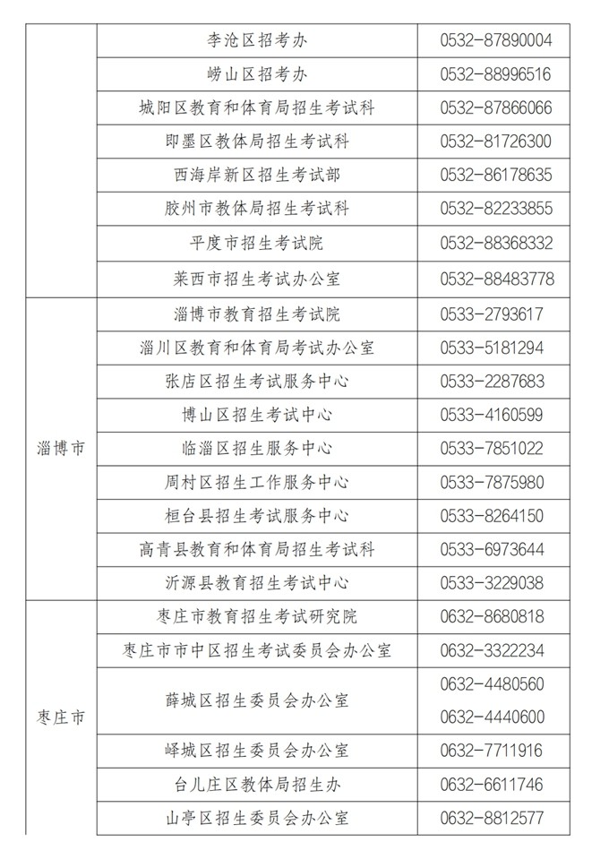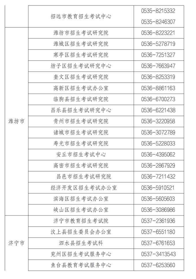 各市、县(市、区)教育招生考试机构咨询电话